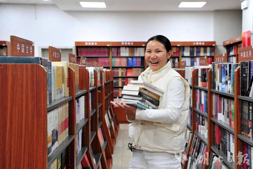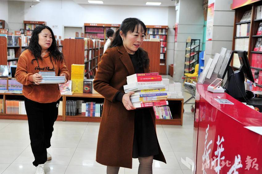 ↑ 小溪塔街道各村(社区)的农家书屋管理员在夷陵新华书店“点单”挑选适用的图书公牛配资。